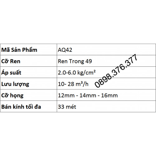 Béc AQ42 - Béc súng nhập khẩu Ấn Độ, bán kính tưới 33 mét