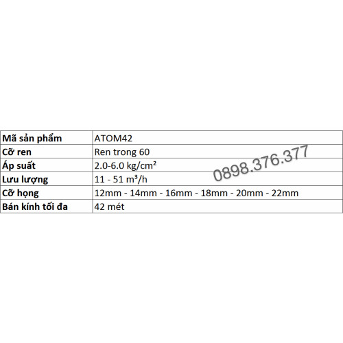Sau đây là thông số kỹ thuật béc ATOM 42