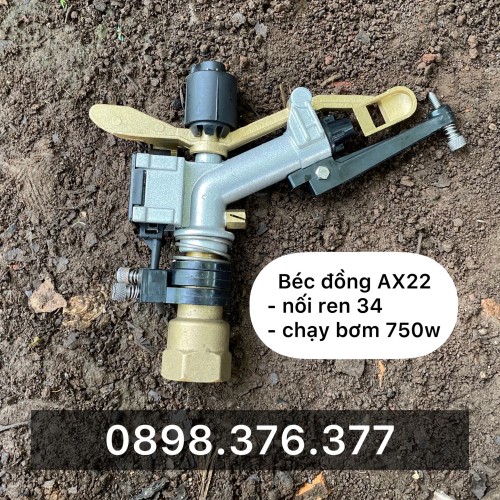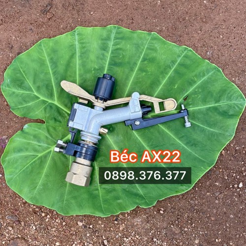Béc AX22 là béc tưới phun mưa bán kính tối đa 18m một bên, xoay tròn 2 bên phóng xa tới 36m. Béc là béc đồng, có gắn bộ chỉnh góc. Béc có khả năng xoay tròn 360 độ hoặc xoay ở 1 góc hẹp tuỳ chỉnh theo người sử dụng.