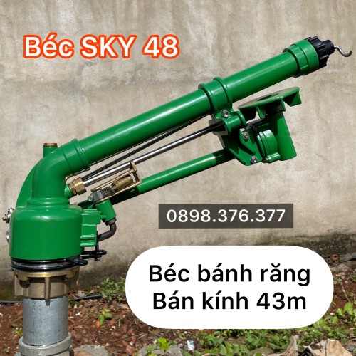 Béc SKY 48 là dòng béc tưới chạy bánh răng, quay bằng nhông nên rất êm ái, chuyên tưới phun mưa bán kính lớn diện rộng cho cây công nghiệp như cà phê, hồ tiêu